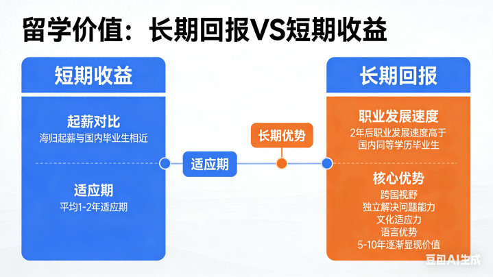 留学的价值往往不是立即体现在起薪上的。根据中国教育部的数据,海归平均需要1-2年适应期,之后职业发展速度通常高于同等学历的国内毕业生。那些跨国视野、独立解决问题的能力、文化适应力以及语言优势,会在未来5-10年的职业生涯中逐渐显现其价值。